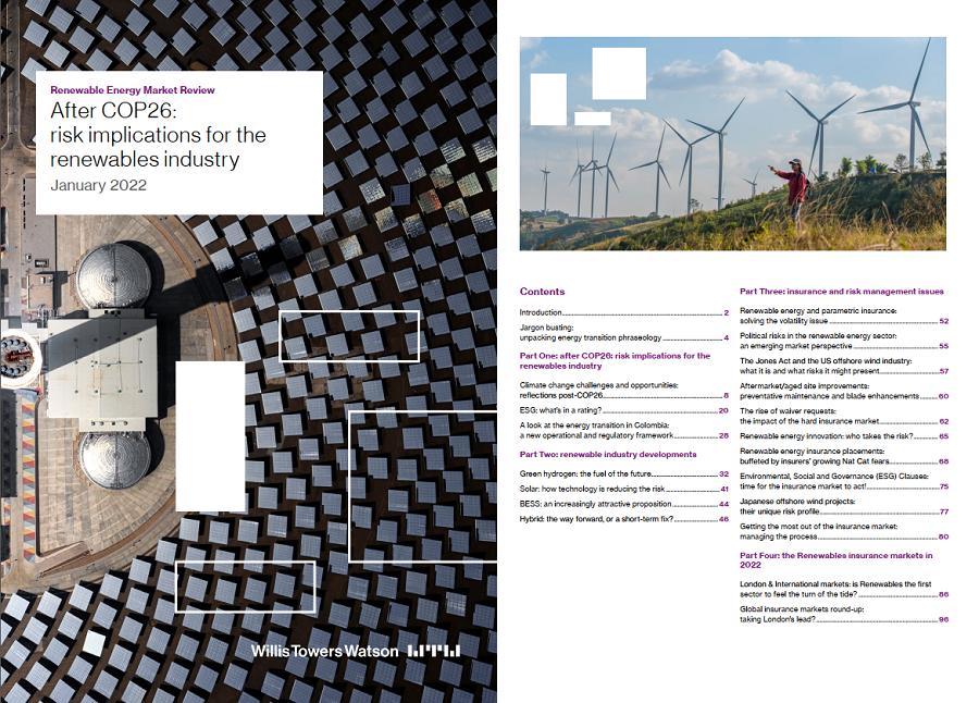 2021年にグラスゴーで開催されたCOP26サミットを受けて、再生可能エネルギー業界の観点から検討すべきリスク関連事項が多数存在します。