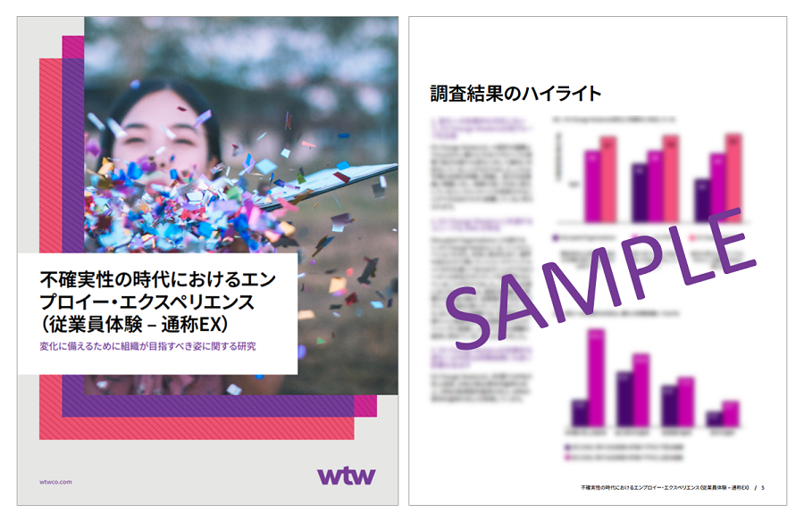 WTWではグローバル規模でのEXに関する調査・分析を行い、人材と組織の観点からどのようなアプローチを取ることで、企業の耐性を強化し、様々な変革を乗り越えることができるかについて、エビデンスに基づく提言をホワイトペーパーとしてまとめました。