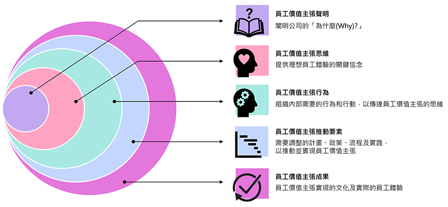 根本上,人們透過工作尋求連結與貢獻。員工價值主張是推動員工體驗 (EX) 的引擎。從表述到實踐,我們採取整合的方法,將員工體驗的各個部分結合成一個一致、連貫且可衡量的員工價值主張。我們亦將組織的目標及其員工的期望達成一致。